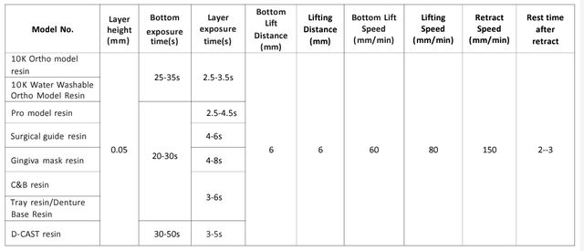 Час експозиції (exposure time): як орієнтир — нижні шари: 20-30 с; звичайні шари: ~3-4 с (для екрану ~6.6″ монохром, 3500-4500 µW/cm²)